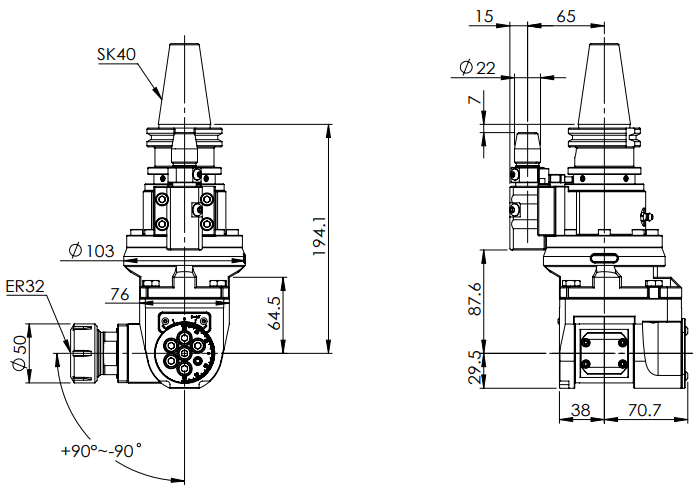 AHG-SK40-A2 萬向角度頭